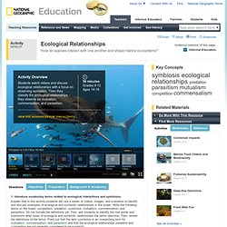 1 of 6 Activity DEVELOP For Informal Educators 50 Minutes Grades 9-12| Ages 14-18 Ecological Relationships How do species interact with one another and shape marine ecosystems? ... Fetch Doc